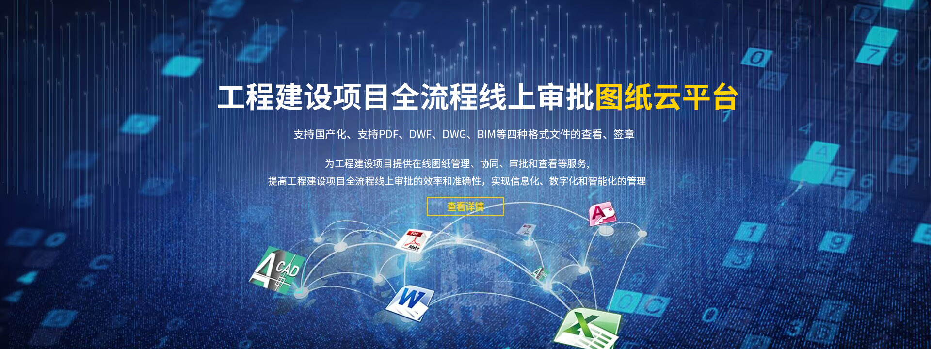 為工程建設(shè)項(xiàng)目提供在線圖紙管理、協(xié)同、審批和查看等服務(wù),提高工程建設(shè)項(xiàng)目全流程線上審批的效率和準(zhǔn)確性,實(shí)現(xiàn)信息化、數(shù)字化和智能化的管理。支持PDF、DWF、DWG、BIM等四種格式文件的查看及簽章,支持國(guó)產(chǎn)化。